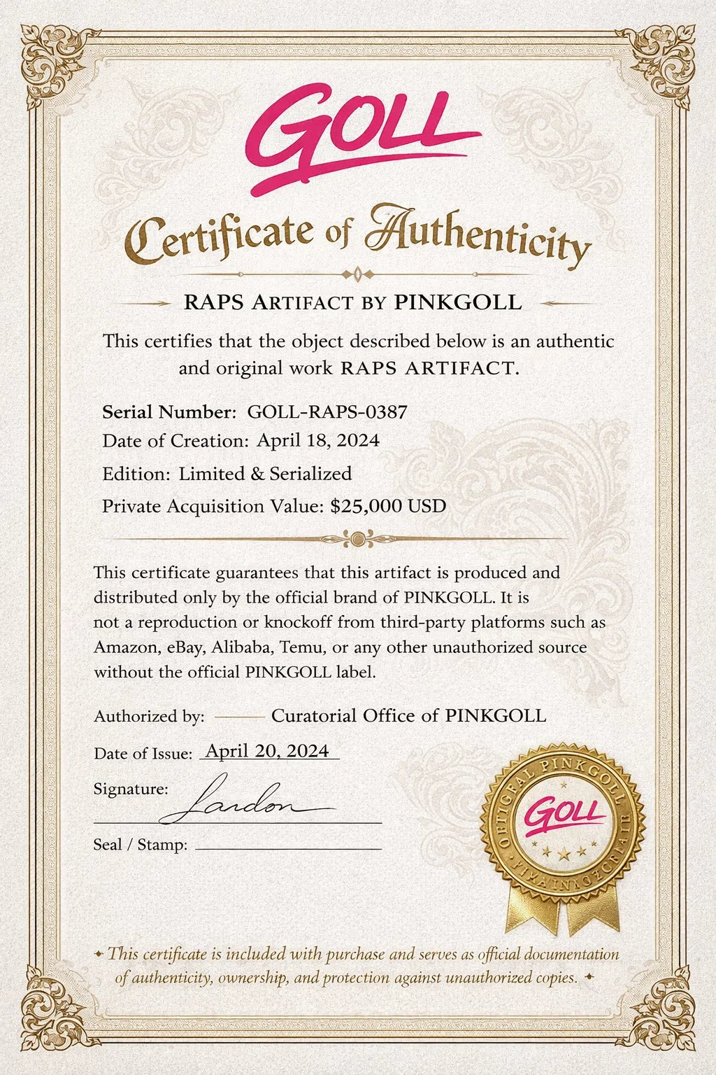 This certificate guarantees that this artifact is produced and distributed only by the official brand of PINKGOLL. It is not a reproduction or knockoff from third-party platforms such as Amazon, eBay, Alibaba, Temu, or any other unauthorized source without the official PINKGOLL label.